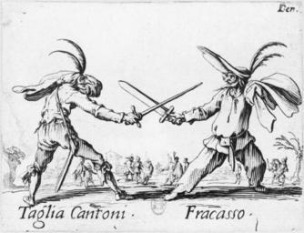 | Keywords: Taglia Cantoni, Fracasso - Gallica 2012 (adjusted).jpg Scaramuccia Little Skirmisher and Fracasso Big Noise nom de guerre of Il Capitano characters of the commedia dell'arte etching print 7 2 x 9 3 cm Taglia Cantoni Fracasso - Gallica 2012 png The image was cropped converted to grayscale light-levels adjusted and converted to jpg format quality level 10 with Photoshop Elements 10 draughtsman m / engraver m Creator Jacques Callot 1621 “1622 Taglia Cantoni Fracasso - Gallica 2012 png PD-old-100 Scaramouche Il Capitano Balli di Sfessania |