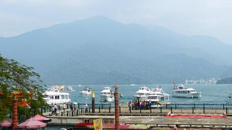 Keywords: taiwan republic of china sun moon lake water tourism relaxation sky mountains scenery tourist attraction boat pier rope