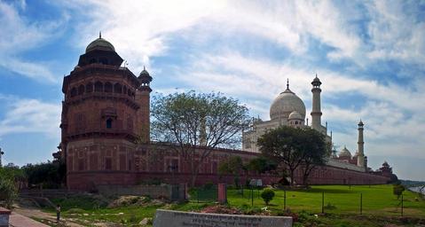 Keywords: taj mahal india travel asia agra architecture monument mausoleum palace islam tourism building vacation temple outdoor mughal culture tower tourist wall historic panorama outside traditional backstreet sky river water landmark place