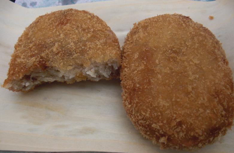 | Keywords: Takaoka Korokke made by Tengu no Niku.jpg en This is Takaoka korokkes that was made by Tengu no Niku Ohtemachi shop in Takaoka Toyama Japan ja 富山 高岡市にある 天狗乃肉大手町店の った高岡コロッケ own Miyuki Meinaka 2010-10-30 Public doamin Korokke Takaoka Toyama Cuisine of Toyama prefecture Cross sections of food |