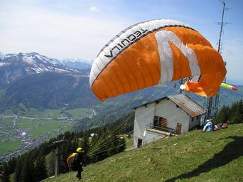 Keywords: take off clipping stage start paragliding wind wind sock fly paraglider mountains allgäu skywalk