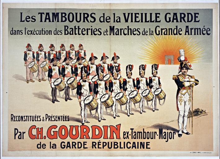 | Keywords: Tambours de la Vieille Garde Ch.Gourdin Tambour major 1910 Gallica BNF.jpg fr Affiche lithographie couleurs 88 x 124 Les Tambours de la Vieille Garde dans l'exécution des batteries et marches de la Grande Armée reconstituées et présentées par Ch Gourdin ex-Tambour-Major de la Garde républicaine Imp Chaix Paris 1910 en Poster lithograph in colors 88 x 124 Les Tambours de la Vieille Garde dans l'exécution des batteries et marches de la Grande Armée reconstituées et présentées par Ch Gourdin ex-Tambour-Major de la Garde républicaine Print Chaix Paris 1910 2013-01-09 15 55 04 ARK-BNF - Gallica unknown public domain claimed by BNF 736 GIMP PD-old Musicians of the Imperial Guard Napoleon I Uploaded with UploadWizard Drummers from France Lithographs of Paris Military bands Napoleonic reenactments Reenactments in France Posters in Paris 1910 paintings |