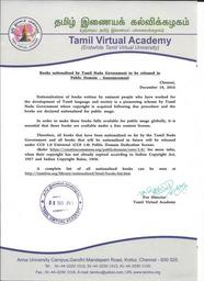 | Keywords: Tamil-Nadu-Nationalized-Books-Public-Domain-Declaration.jpg en Letter from Tamil Virtual Academy declaring books nationalized by Tamil Nadu government as public domain works 2015-12-18 own Ravidreams other versions 100px thumb left Tamil version cc-zero Tamil Wikipedia Free Content Advocacy |