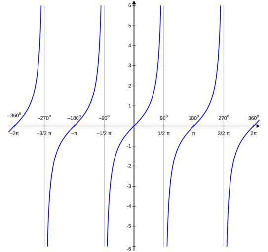 | Keywords: Tan proportional.svg Plot of tan x with proportional scales and the gnuplot source Own date Olaf m <pre> set terminal svg enhanced font Arial 10 size 658 620 set output 'c \temp\tan svg' set border 0 set style arrow 2 head filled lw 2 size 0 15 30 set style arrow 4 nohead set samples 1000 unset key set xtics axis ÔÇô2¤Ç -2 pi ÔÇô3/2 ¤Ç -1 5 pi ÔÇô¤Ç -pi ÔÇô1/2 ¤Ç -pi/2 1/2 ¤Ç pi/2 ¤Ç pi 3/2 ¤Ç 1 5 pi 2¤Ç 2 pi scale 0 5 set x2tics axis ÔÇô360 o -2 pi ÔÇô270 o -1 5 pi ÔÇô180 o -pi ÔÇô90 o -pi/2 90 o pi/2 180 o pi 270 o 1 5 pi 360 o 2 pi scale 0 5 offset 0 2 7 set style line 3 lw 1 lt 5 lc rgb black set style line 1 lc rgb blue lw 2 set ytics axis -6 -5 -4 -3 -2 -1 1 2 3 4 5 6 scale 0 5 set arrow arrowstyle 2 from -2 pi-0 3 0 to 2 pi+0 3 0 set arrow arrowstyle 2 from 0 -6 2 to 0 6 2 set arrow arrowstyle 4 linestyle 0 from -1 5 pi -6 to -1 5 pi 6 set arrow arrowstyle 4 linestyle 0 from -0 5 pi -6 to -0 5 pi 6 set arrow arrowstyle 4 linestyle 0 from 0 5 pi -6 to 0 5 pi 6 set arrow arrowstyle 4 linestyle 0 from 1 5 pi -6 to 1 5 pi 6 plot -2 pi-0 3 2 pi+0 3 -6 6 tan x linestyle 1 set output unset arrow unset label </pre> SVG trigonometry Tangent function |