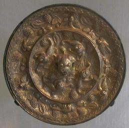 | Keywords: Tang dynasty bronze mirror with lions and grapevines design, HAA.JPG en Tang dynasty 618-906 bronze mirror with lions and grapevines design Honolulu Academy of Arts own Hiart photo 2011 Chinese bronzes in the Honolulu Museum of Art Bronze mirrors of the Tang Dynasty Grapevines in art Cc-zero |