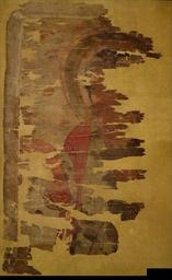 | Keywords: T'ang dynasty Nestorian image of Jesus Christ (Original version).jpg en Fragmentary painting of standing figure While the figure has some features typical of bodhisattva images three-quarter view hand gesture this appears to be a Christian saint possibly Nestorian He has a halo and a cross each arm terminating in bead-like extensions appears both in the headdress of the figure and hanging form the necklace he is wearing In his left hand he holds a long staff He wears a red stole with a yellow lining over a robe which has faded to a greenish colour very similar to that of the background silk Two minor features suggest that this painting dates from the end of the 9th century the narrow flame border of the halo and the configuration of the mouth which has a slight downward return to the ends of the ink line between the lips Further confirmation of a possible Christian identification of the figure appears on close examination of the face as there is a fairly thick moustache and a slight beard both in red and quite different from the curling moustaches generally in green of Bodhisattvas zh-tw 此像如菩薩像中 常見的那樣,爲四分之三身像,右手的姿勢也很相似,但表現的是基 敎,應該是景敎的聖 冠飾和項鍊都 邊緣爲水滴 的十字架 聖 左手持長 ,身披黃色襯裏的紅色披肩,其下著綠色衣裳,但已褪色,以致其與背景顔色相近 頭光 細小的火燄帶,閉合的脣線拉著墨線,兩端稍 下翻卷 兩 微小特徵說明此畫是9世 以後的 品 細査臉部描繪,相當濃密的鬍子和 疏的鄂鬚都是赤茶色的,與 世音菩薩 常捲曲的綠色鬍鬚完全不同,從 點可肯定此像表現的是基 敎聖 T'ang dynasty http //www britishmuseum org/research/collection_online/collection_object_details aspx objectId 6602 partId 1 anonymous other versions PD-old-100 Nestorianism Jesus Christ in art Paintings of the Tang Dynasty |