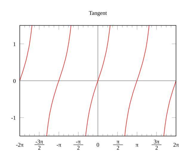 | Keywords: Tangent.svg A graph of the tangent function on the interval -2Ï 2Ï 2006-03-21 own assumed Ktims Instructions Generated with the following gnuplot script then touched up and reannotated in Inkscape <pre> set terminal svg size 1600 1300 fname Times New Roman fsize 48 set output tangent svg set nokey set xtics pi/2 set mxtics 4 set ytics 1 set nogrid set xzeroaxis set yzeroaxis set title Tangent set xrange -2 pi 2 pi set yrange -1 5 1 5 plot tan x lw 4 </pre> Tangent function Images with Gnuplot source code |