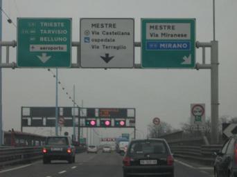 Keywords: Tangenzialemestre2.jpg it La tangenziale in prossimità dell'uscita Mestre via Miranese direzione est Own Gf9 2009-02-23 17 40 28 Mestre Autostrada A57 Italia Highway signs in Italy Directional road signs in Italy E55 Italy