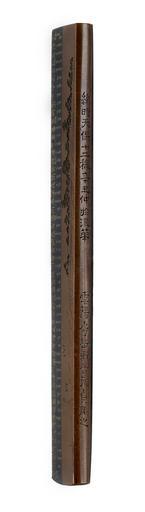 Keywords: Tani Motosada - Kozuka with Mt Fuji and the 53 Stations of the Tôkaidô - Walters 51644 - Mark A.jpg A depiction of Mt Fuji fills the front of the kozuka The peak is often covered in snow represented here in silver On the reverse is a list in gold inlay of the fifty-three stations of the Tôkaidô road between Edo now Tokyo and Kyoto Below each station name is the distance to the next station On the bottom half of the reverse side is a landscape scene This may be Amanohashidate in northern Kyoto prefecture The view of the sand bar covered with pines at Amanohashidate is considered one of the three great views in Japan 1841 late Edo shakudo copper silver gold cm 9 9 accession number 51 644 4656 Henry Walters Baltimore date and mode of acquistion unknown Walters Art Museum Henry Walters Acquired by Henry Walters Date iji Tenpô jyû ni nen kanoto ushi chûtô ; Translation 1841 year of the ox 11th month; Signature Unyô Jugakuken Tani Motosada horu kore; Translation Unyô Jugakuken Tani Motosada carved this place of origin Shimane Japan Walters Art Museum license Kozuka in the Walters Art Museum Media contributed by the Walters Art Museum needs category review Tani Motosada |