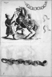 | Keywords: Tanner horseman.jpg ru Конь под седлом с конюхом и конские ук ашения цепи подковы ы п оехали уже т и четве ти мили когда вст етили ца ских спальников в богатом на яде мчавшихся на оскошно уб анных иноходцах Сознаюсь что мне не под силу описать как следует уб анство их азнооб азие одеяний и п очее великолепие всей этой ве еницы необычайную их пышность к асу и блеск можно азве вооб азить Вп очем асскажу как сумею что в изумлении я увидел а них ловко сидели к асные полукафтанья а д угие в оде длинного плаща были накинуты на шею масте ски вышитые подбитые соболем; они называют их фе язями а каждой фе язи на г уди по обе сто оны виднелись озы из к упных жемчужин се еб а и золота Они носили эти фе язи отве нув их у п авого локтя и заб осив за спину Блиставшие на солнце каменьями золотом и се еб ом шапки п идавали еще больше к асы этой ве енице и без того на ядных спальников Сб уя тоже была великолепна сп ава и слева от удил до пе едней седельной луки в виде полук уга имели они се еб яные а иные так и золотые испещ енные азными узо ами цепи толщиною в т и пальца заставляя коней п ивскакивать от их б яцания; п иятный их звук п оизводили они и с помощью имевшихся в их уках хлыстов <small> Это были так называемые чепи Они были двух одов поводные и г емячие; поводные делались из колец и висели от удил до пе едней седельной луки в виде поводьев а г емячие из нескольких ск епленных между собою дутых г емушек; п ицеплялись они у той же луки и висели иногда ниже живота </small> Конские ноги ук ашались подковами тоже п оизводившими звук от п ивешенных к ним се еб яных цепочек и до огими наколенками monilia <small> Ук ашения на конских ногах были наколенки надевавшиеся с се еб яными и золотыми бляхами под самыми коленками; ост оги у самых копыт в виде шпо ; также бубенчики и цепи; эти последние ук ашения или п ивязывались тесьмою к ноге лошади или п ик еплялись к подковам </small> Словом весь от яд их думается было их до двухсот так и го ел как жа своим светлым уб анством Довольно долго га цевали они так д уг пе ед д ужкой потом с утомленных коней пе есели на д угих в еще более пышной сб уе и начали удивительно сказать не касаясь земли пе ескакивать с одного седла на д угое выказывая такую ловкость что все в изумлении залюбовались на их искусство 1678 http //www vostlit info/Texts/rus11/Tanner/karten phtml Польско-Литовское посольство в осковию Бе нга д Танне Custom license marker 2012 03 15 PD-old-100 Uploaded with UploadWizard Bernhard Tanner |