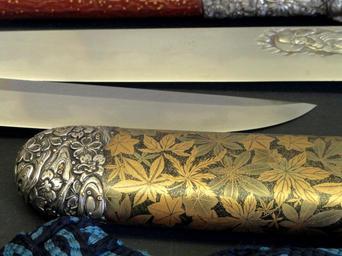 | Keywords: Tanto, signed Uji-fusa - George Walter Vincent Smith Art Museum - DSC03573.JPG en Exhibit in the George Walter Vincent Smith Art Museum 21 Edwards Street Springfield Massachusetts USA This item is old enough so that it is in the public domain The museum permitted photography without restriction 2012-12-19 12 38 08 own Daderot cc-zero Japanese swords in the George Walter Vincent Smith Art Museum Uploaded with UploadWizard | ||||