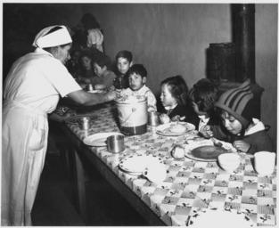 | Keywords: Taos County, New Mexico. The hot lunch, school at Penasco. Children pay about 1 cent daily for thi . . . - NARA - 521841.jpg Scope and content Full caption reads as follows Taos County New Mexico The hot lunch school at Penasco Children pay about 1 cent daily for this hot meal made up primarily of food from the Surplus Commodities Program and prepared by WPA-paid cooks General notes 521841 Local identifier 83-G-41605 Department of Agriculture Bureau of Agricultural Economics Division of Economic Information ca 1922 - ca 1953 NARA-Author Rusinow Irving Photographer 5307166 <br /> Still Picture Records Section Special Media Archives Services Division NWCS-S National Archives at College Park 8601 Adelphi Road College Park MD 20740-6001 12/1941 Record group Record Group 83 Records of the Bureau of Agricultural Economics 1876 - 1959 Record group ARC 412 Photographic Prints Documenting Programs and Activities of the Bureau of Agricultural Economics and Predecessor Agencies compiled ca 1922 - ca 1947 documenting the period ca 1911 - ca 1947 Series ARC 521048 File unit File unit ARC Variant control numbers NAIL Control Number NWDNS-83-G-41605 Other versions <gallery> File Taos_County _New_Mexico _The_hot_lunch _school_at_Penasco _Children_pay_about_1_cent_daily_for_thi_ _ _ _-_NARA_-_521841 tif tif File Taos_County _New_Mexico _The_hot_lunch _school_at_Penasco _Children_pay_about_1_cent_daily_for_thi_ _ _ _-_NARA_-_521841 jpg jpg </gallery> NARA-cooperation PD-USGov Irving Rusinow 1941 in Taos County School lunch |