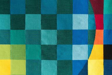Keywords: tapestry square district detail yellow orange red green blue turquoise black color gradation abstract background about structure pattern form artists herbert baker creativity geometry composition chromatic