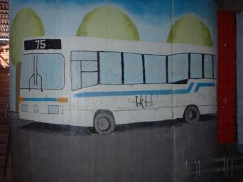Keywords: Tapulikaupunki graffitti.jpg fi Finnish Wikipedia Vkem Puistola railway station Graffiti in Finland Taken with Fujifilm FinePix 1300 Buses in art