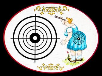 Keywords: target shoot objectives middle center archery competition sport woman hits disc