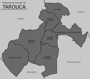 | Keywords: Tarouca freguesias 2013.svg pt Freguesias do concelho de Tarouca Fontes Diário da República Reorganização administrativa do território das freguesias Lei n º 11-A/2013 de 28 de janeiro Direcção-Geral do Território Carta Administrativa Oficial de Portugal CAOP versão 2013 Continente http //www dgterritorio pt/ficheiros/cadastro/caop/caop_download/caop_2013_0/caop2013cont_zip_2 en Civil parishes in the municipality of Tarouca Portugal Sources Diário da República Administrative reorganization of the civil parishes' territory Law n 11-A/2013 from 28th January Direcção-Geral do Território Official Administrative Chart of Portugal CAOP version 2013 Mainland http //www dgterritorio pt/ficheiros/cadastro/caop/caop_download/caop_2013_0/caop2013cont_zip_2 2014-04-21 17 09 33 own Gazilion cc-zero Uploaded with UploadWizard Tarouca SVG maps of freguesias in Portugal |