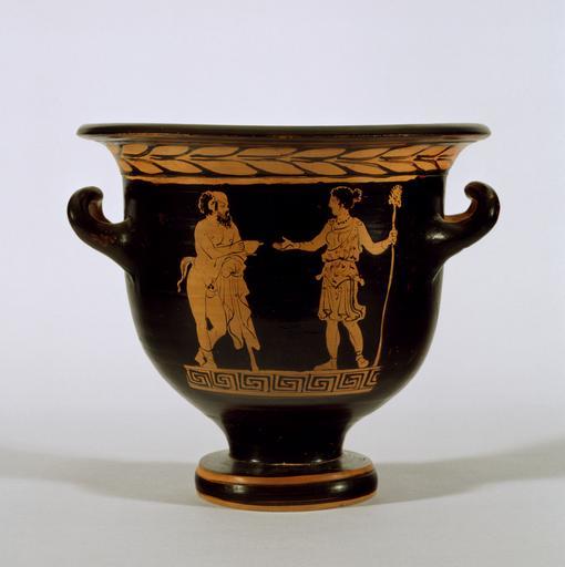| Keywords: Tarporley Painter - Red-Figure Bell Krater with Satyr and Maenad - Walters 482760 - Side A.jpg Scenes related to the wine-god Dionysus are appropriate for kraters as these vessels were used to mix wine and water Here an old satyr hands a cup to a maenad wearing a short dress and an animal skin-clothing normally associated with the goddess Artemis or an Amazon On the opposite side two youths in mantles are engaged in conversation The Tarporley Painter is named after the previous owner of one of the vases he created He is the most important painter to work in the early plain style of Apulian vase painting The bell krater was his favorite vase shape and Dionysiac themes are common in his work ca 380 BC Classical terracotta cm 49 5 29 8 accession number 48 2760 7369 Münzen und Medaillen A G Basel Switzerland Marilyn and Herbert Scher Pikesville Maryland June 29 1983 by purchase Walters Art Museum Gift of Marilyn and Herbert Scher 2003 place of origin Apulia Italy Walters Art Museum license Ancient Greek red-figure pottery in the Walters Art Museum Tarporley Painter Media contributed by the Walters Art Museum needs category review Media contributed by the Walters Art Museum needs artist update Satyrs in ancient Greek pottery Maenads in ancient Greek pottery Ancient Greek pottery from Italy |