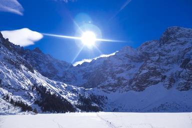 Keywords: tatry mountains winter in the mountains sky the sun view morskie oko