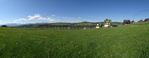 Keywords: tatry mountains the high tatras nature polish tatras poland village spring green grass landscape