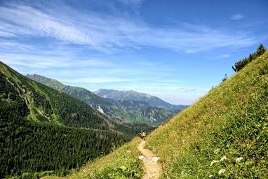 Keywords: tatry slovakia landscape top view mountains view nature mountain sky tourists valley koperszadów