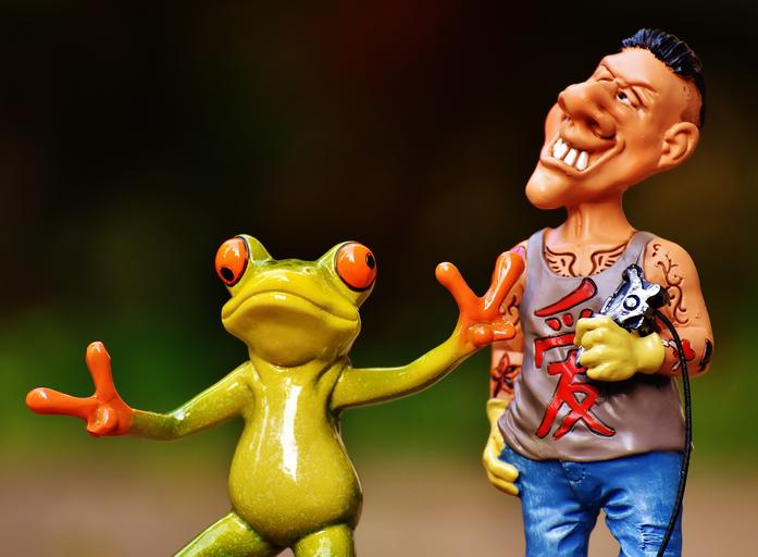 Keywords: tattoo artist frog customer figures funny man decoration tattoo deco