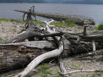 Keywords: Taushubetsu Bridge.jpg 水没するタウシュベツ橋梁 AUTUMNSNAKE 2006-06-27 AUTUMNSNAKE PD なし Taushubetsu Bridge Driftwood