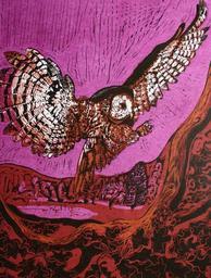 Keywords: Tawny Owl by Trevor Kemp Linocut art-call Artistically