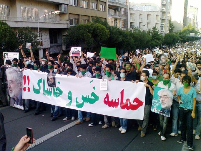 | Keywords: Tazahorat sabz (19).JPG Protest demonstration against election results 7th Tir thru Karimkhan to Vali Asr Sq and beyond Tehran Banner reads We are the epic of twigs and thorns Twigs and thorns refers to what Ahmadinejad had labeled the defeated protesters in mockery It refers to http //openburhan net/ob php sid 23 vid 41 Surah 23 Al-Muminun myself on behalf of photographer Saba The photographer nicknamed Saba wishes to remain anonymous I have permission from photoghrapher to upload to WikiCommons under PD license Contact me for verification Protests relating to the Iranian presidential election 2009 from 7th Tir to Vali Asr Tehran |