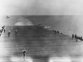 | Keywords: TBD sinking astern of USS Enterprise (CV-6) in May 1942.jpg U S Navy Lieutenant Commander Eugene E Lindsey's Douglas TBD-1 Devastator BuNo 0370 sinking astern of the aircraft carrier USS Enterprise CV-6 after a deck landing accident on 28 May 1942 The plane guard destroyer USS Monaghan DD-354 is in the left background Enterprise was then en route to the Midway area LCdr Lindsey Commanding Officer of Torpedo Squadron 6 VT-6 was flying out with the rest of the air group to join the ship when the crash took place He and the other members of the plane's crew were rescued by Monaghan <br>Although injured in this accident Lindsey led the attack of VT-6 on the Japanese carriers off Midway He died in action 4 June 1942 with his rear-seat gunner C T Grant ACRM when their Devastator was shot down by Japanese A6M2 Zero fighters while attacking the Japanese aircraft carrier Kaga VT-6 lost 10 out of 14 planes Lindsey was posthumously awarded the Navy Cross Official U S Navy photo http //www history navy mil/our-collections/photography/wars-and-events/world-war-ii/midway/80-G-7744 html 80-G-7744 from the U S Navy http //www history navy mil Naval History and Heritage Command 1942-05-28 USN PD-USGov-Military-Navy Eugene E Lindsey Aboard USS Enterprise CV-6 Douglas TBD Devastator USS Monaghan DD-354 Battle of Midway US forces |