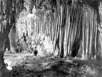 | Keywords: usgs tbt throwbackthursday science geology carlsbad cavern cave rocks historical history blackandwhite monochrome outdoor tree plant landscape forest black and white This photo was taken in 1923 inside Carlsbad Caverns National Park, New Mexico shows a wall in the chambers known as Shinav's Wigwam (from Shinav, a mythical deity of the Navajo Indians). The stalactites have grown together laterally to form a solid curtain-like mass. This photo was taken in 1923 inside Carlsbad Caverns National Park, New Mexico shows a wall in the chambers known as Shinav's Wigwam (from Shinav, a mythical deity of the Navajo Indians). The stalactites have grown together laterally to form a solid curtain-like mass. |