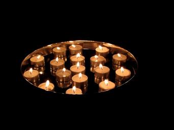 Keywords: tea lights candles burn lights wax tealights on plate heat flame hot security atmospheric