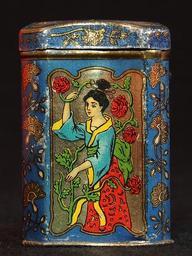 | Keywords: Tea sample tin with four Geishas, photo5.JPG Very old product that is not produced and not sold any more Note that some tins may look the same but when looked for carefully there are some slight differences Photographed at a collector of Droste memorabilia and old tin cans For more info see http //www tincollectors nl/ tincollectors nl or email info tincollectors nl own 2014-02-08 11 40 40 Alf van Beem CC-Zero Trademarked Tea tins | ||||