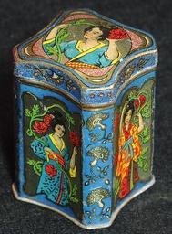 | Keywords: Tea sample tin with four Geishas, photo7.JPG Very old product that is not produced and not sold any more Note that some tins may look the same but when looked for carefully there are some slight differences Photographed at a collector of Droste memorabilia and old tin cans For more info see http //www tincollectors nl/ tincollectors nl or email info tincollectors nl own 2014-02-08 11 43 33 Alf van Beem CC-Zero Trademarked Tea tins | ||||