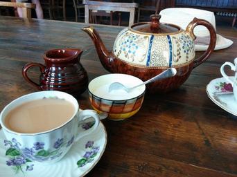 Keywords: tea service sugar bowl cup saucer china teapot creamer table drink refreshment spoon hot