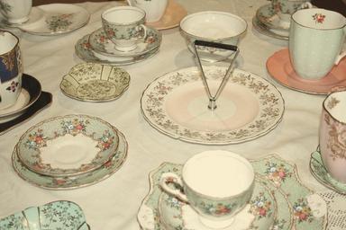 Keywords: tea set tea party teapot cups filter vintage retro plates dinner pink teacups