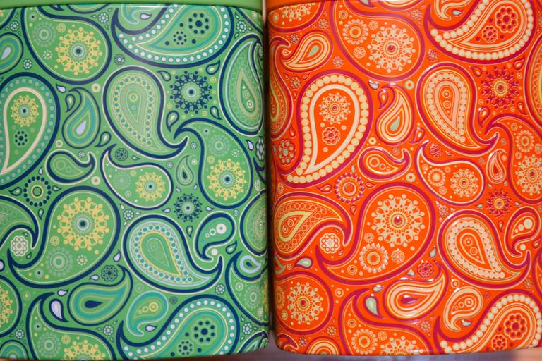 Keywords: tea tins cans colorful color green red pattern metal cans