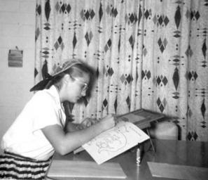 | Keywords: arizona voluntary service voluntaryservice mennonite board of missions mennoniteboardofmissions janet yoder janetyoder blackandwhite monochrome black and white Caption: 1961. Kindergarten teacher Janet Yoder, Dalton, Ohio is preparing kindergarten materials in Stanfield, Arizona. Citation: Mennonite Board of Missions. Photographs. Arizona VS/Migrant Units, 1955-1962. IV-10-7.2 Box 2 Folder 1, photo #47. Mennonite Church USA Archives - Goshen. Goshen, Indiana. Caption: 1961. Kindergarten teacher Janet Yoder, Dalton, Ohio is preparing kindergarten materials in Stanfield, Arizona. Citation: Mennonite Board of Missions. Photographs. Arizona VS/Migrant Units, 1955-1962. IV-10-7.2 Box 2 Folder 1, photo #47. Mennonite Church USA Archives - Goshen. Goshen, Indiana. |