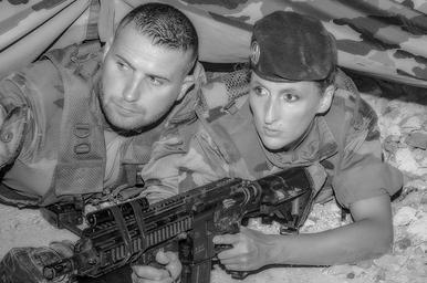 Keywords: team military training man woman gun war