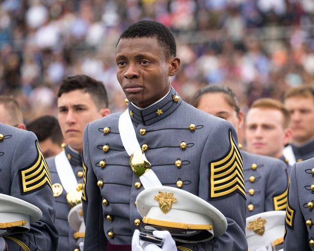 | Keywords: west point westpoint new york newyork united states unitedstates us people groupshot sport outdoor Cadet Alix Idrache sheds tears of joy during the commencement for the U.S. Military Academy’s Class of 2016 at Michie Stadium in West Point, May 21. Nine hundred and fifty-three cadets graduated, which represented approximately 78 percent of the cadets who entered West Point in the summer of 2012. Vice President Joe Biden was the graduation speaker. This is the 218th graduating class of West Point. This class included 151 women, 77 Hispanics, 71 Asian/Pacific Islanders, 69 African-Americans and 12 Native Americans. The class also had 25 combat veterans (24 male, one female). (U.S. Army photo by: Staff Sgt. Vito T. Bryant) Cadet Alix Idrache sheds tears of joy during the commencement for the U.S. Military Academy’s Class of 2016 at Michie Stadium in West Point, May 21. Nine hundred and fifty-three cadets graduated, which represented approximately 78 percent of the cadets who entered West Point in the summer of 2012. Vice President Joe Biden was the graduation speaker. This is the 218th graduating class of West Point. This class included 151 women, 77 Hispanics, 71 Asian/Pacific Islanders, 69 African-Americans and 12 Native Americans. The class also had 25 combat veterans (24 male, one female). (U.S. Army photo by: Staff Sgt. Vito T. Bryant) |