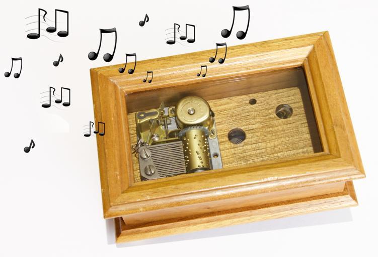 Keywords: technology mechanics wood casket musical instrument music box sheet music sound