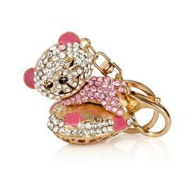 Keywords: teddy bear key ring keychain key ring pendant heart color gold pink packshot