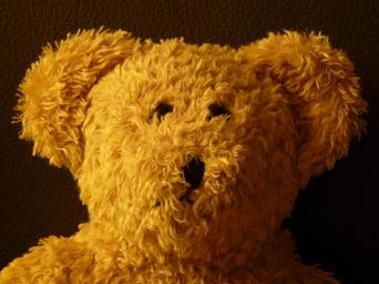 Keywords: teddy bear soft fluffy cuddly purry button eyes brown light brown friendly toys children toys cheerful fur fun portrait