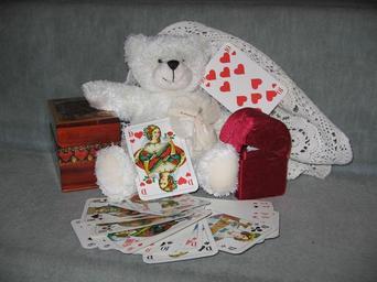 Keywords: teddy teddy bear plush toys soft toys stuffed animals cards playing cards heart card game box matchbox playing card blanket filigree