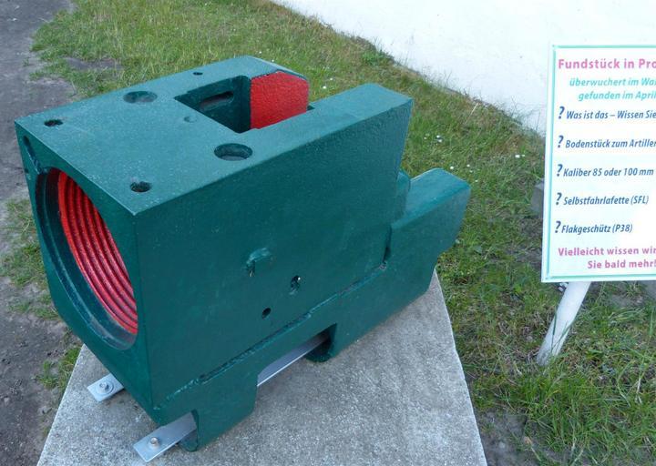 Keywords: Teil eines Geschützes (1).JPG de Verschlussblock einer S-53 gefunden in Prora auf Rügen 2012-06-23 own SPBer cc-zero Uploaded with UploadWizard 85-mm tank cannon model 1944 Prora