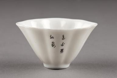 | Keywords: Tekopp med kinesiska tecken. Gjord i Kina på 1600-talet - Hallwylska museet - 95565.tif LSH artwork sv Vinbägare Klockformig något tryckt från två sidor På ena sidan fem kinesiska tecken sê yü tien hung hia d v s färgen är jadens med stänk av rosenfärgat moln vilket antyder att innehållet bör vara rött vin <br/>Inköpt av Wilhelmina von Hallwyl den 22 oktober 1923 hos Sigge Björks konsthandel Stockholm för 12 kr <br/>Wine-cup Late Ming-dynasty original caption Tekopp med kinesiska tecken Gjord i Kina på 1600-talet <br/> Nyckelord keramik Dryckeskärl Kinesiskt porslin Föremålsbild Ming size cm 5 7 5 9 2 HWY place of origin CN original filename hm_dig12069 15142 inventory number HWY XLVIII XI C a j 08 95565 CC-BY-SA Jens Mohr Porcelain of China Ming Dynasty Beakers Ceramics Chinese ceramics in the Hallwyl Museum Sweden Jens Mohr Media contributed by LSH 2014-11 |