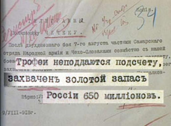 Keywords: Telegram Kappel.jpg en Telegram from Kappel gold fr Télégramme de Kappel au sujet des réserves d'or Телег амма Каппеля п о золотой запас России http //russkiymir ru/common/img/uploaded/journal/rm7_08-12-03 jpg Transferred from Изоб ажение Золото Каппеля jpg Original uploader was User MPowerDrive Guy de Rambaud 1918 PD-old Vladimir Kappel Generals of Russia Civil war of Russia 1918 Telegrams |