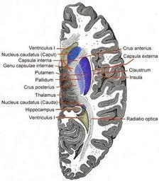 | Keywords: Telencephalon-Horiconatal.jpg Horicontal section through Telencephalon Basal ganglia blue modified after Gray's Anatomy by Uwe Gille 16 30 6 August 2005 UTC and Hermann Thomas 08 36 18 September 2006 UTC August 2005 September 2006 modified after Gray's Anatomy by Uwe Gille 16 30 6 August 2005 UTC and Hermann Thomas 08 36 18 September 2006 UTC thumb none Based upon this image Gray's Anatomy plate Neuroanatomy Human brain horizontal section Striatum Optic radiation Putamen Caudate nucleus Globus pallidus |