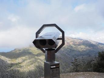 | Keywords: telescope by looking view binoculars optics distance vision overview outlook distant view target lookout search foresight distant watch wide sky blue partly cloudy viewpoint karst area mallorca serra de tramuntana mountains spain balearic islands coll dels rice gorge karst landscape pay subject to a charge coin-operated |