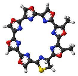 | Keywords: Telomestatin-3D-balls.png Ball-and-stick model of the telomestatin molecule a macrocyclic chemical compound Colour code 505050 Carbon C black<br> F0F0F0 Hydrogen H white<br> F51E1E Oxygen O red<br> 3C50FA Nitrogen N blue<br> FAEB00 Sulfur S yellow<br> 2011-06-03 own DS Visualizer Jynto talk Space-filling version cc-zero Oxazoles Macrocyclic compounds Thiazolines Images by Jynto | ||||