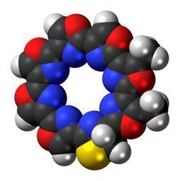 | Keywords: Telomestatin-3D-spacefill.png Space-filling model of the telomestatin molecule a macrocyclic chemical compound Colour code 505050 Carbon C black<br> F0F0F0 Hydrogen H white<br> F51E1E Oxygen O red<br> 3C50FA Nitrogen N blue<br> FAEB00 Sulfur S yellow<br> 2011-06-03 own DS Visualizer Jynto talk Ball-and-stick version cc-zero Oxazoles Macrocyclic compounds Thiazolines Images by Jynto | ||||